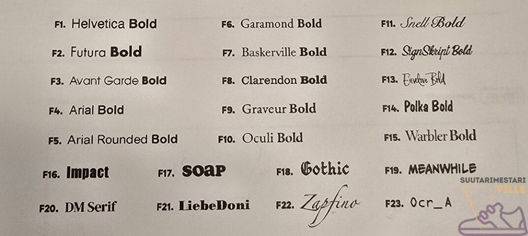 Kyltin koko 240 x 35mm. Kaiverrusala 180 x 20mm