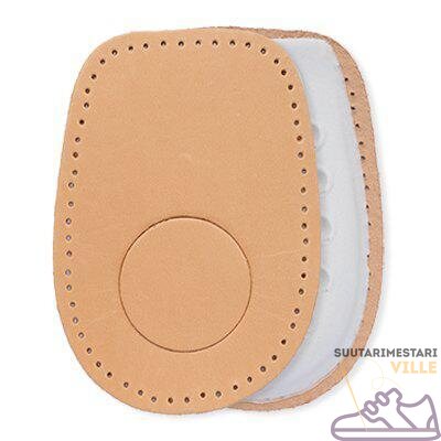Erityismuotoilu kantapiikille: Tyynyn keskellä oleva reikä (stansattu rengas) on suunniteltu keventämään painetta suoraan kivuliaasta kohdasta. Se antaa kantapiikin "levätä" vapaasti ilman suoraa kosketusta kenkään.