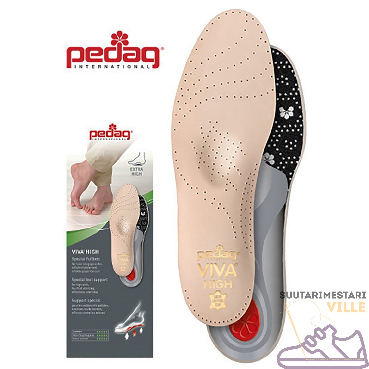 Erityistä: Ohut mutta tukeva rakenne, joka mahtuu useimpiin arkikenkiin ja työjalkineisiin.